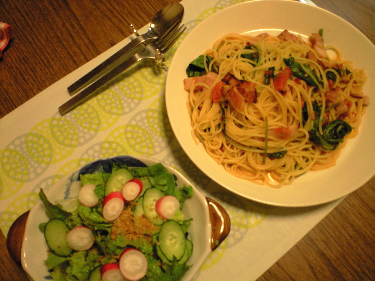 そんなわけで、今夜は野菜サラダとパスタを作りました。