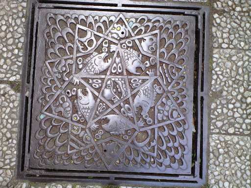 駅に戻る途中に一枚。谷津の商店街にあったマンホールのふたです。